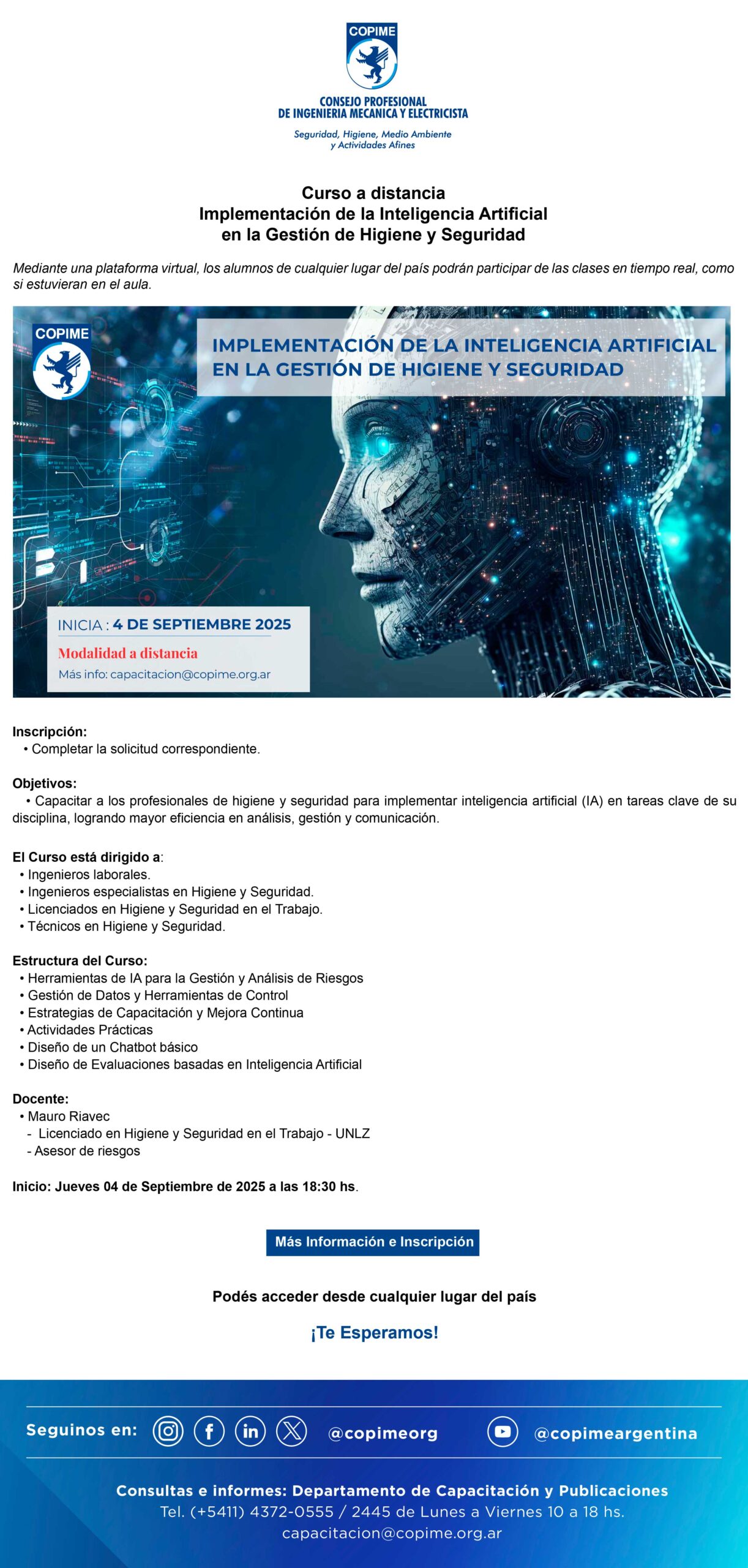 Curso online: Implementación de la IA en la Gestión de Higiene y Seguridad – Inicio: 4 de Septiembre